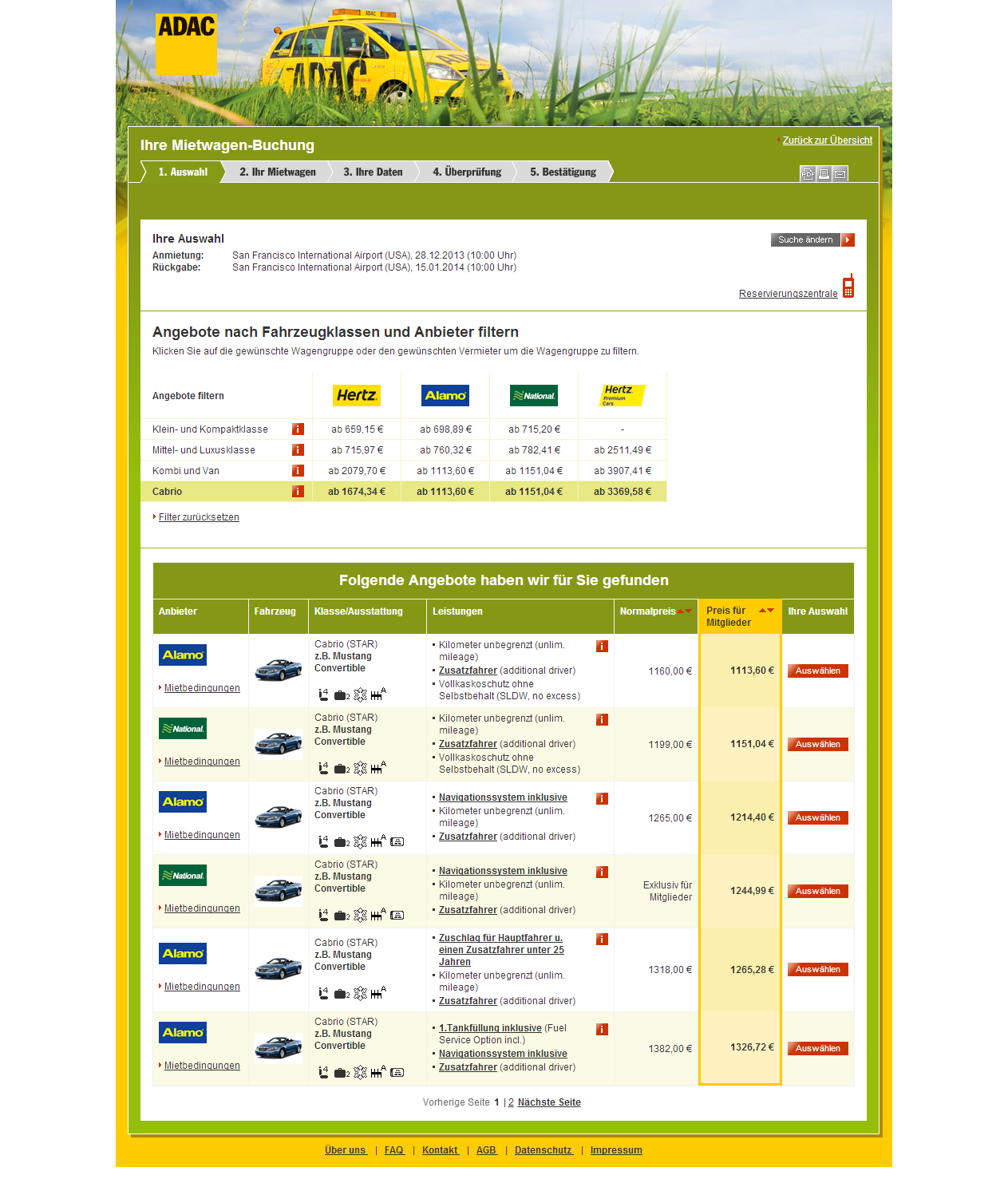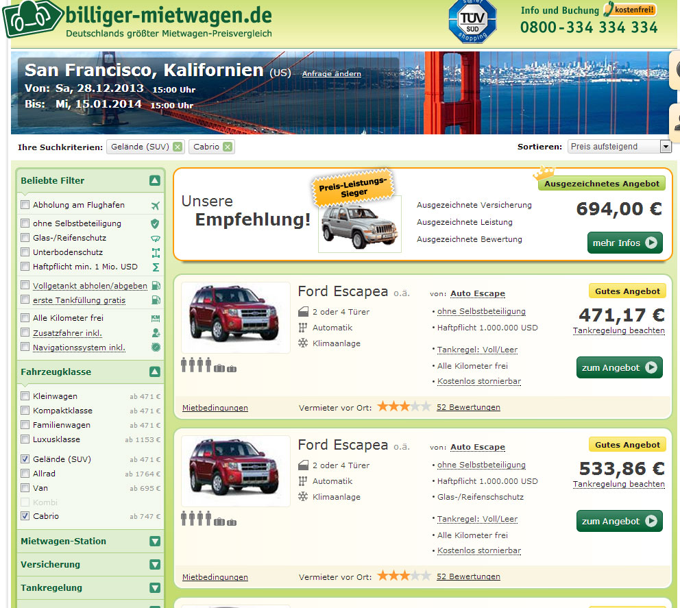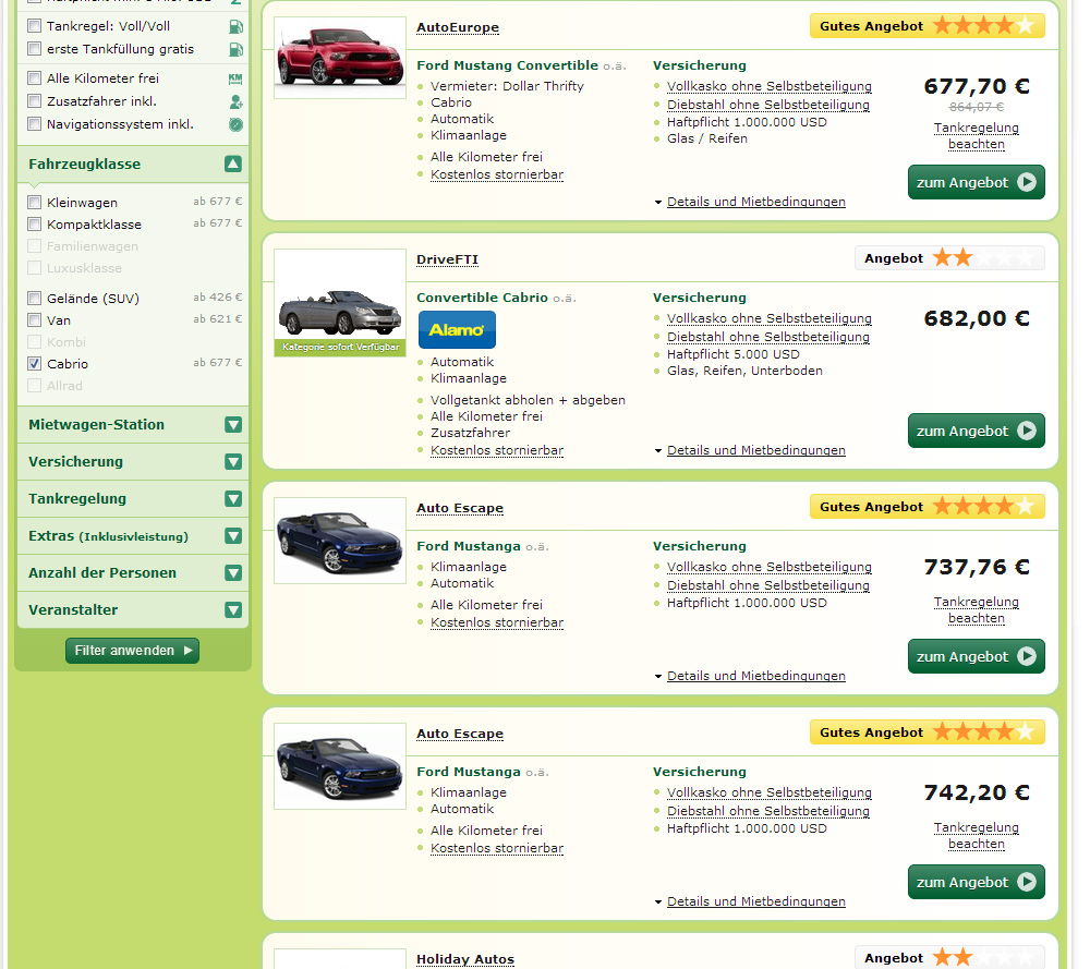 von calli am Dienstag, 12. November 2013, 10:45 UhrWeiter Angebote bzgl. Mietwagen sind hier: (http://www.billiger-mietwagen.de/) Dort gibt es auch den Ford Mustang für knapp 740Dollar.Den Zeitraum habe ich immer auf 30.12.2013 - 15.01.2014 gesetzt. Das sollte doch passen oder?